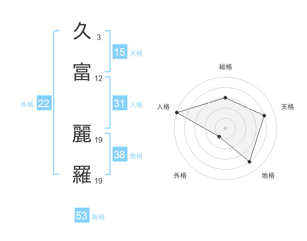 久富 麗羅さんを姓名の画数から五運を鑑定