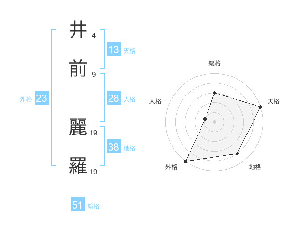 井前 麗羅さんの総格は51画の3点!