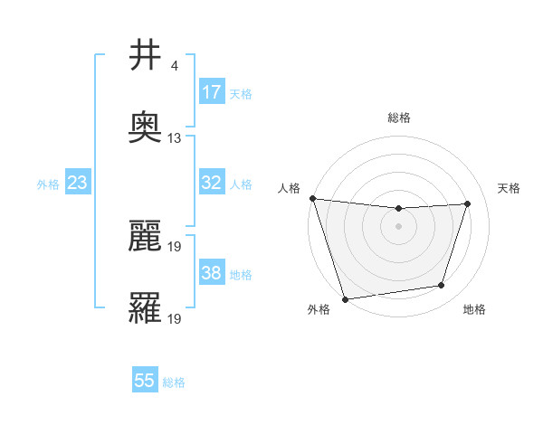 井奥 麗羅さんの外格は23画の5点!