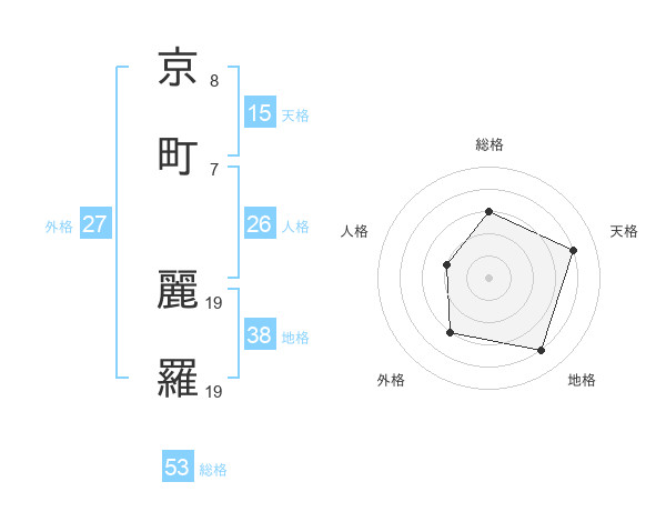 京町 麗羅さんを姓名の画数から五運を鑑定