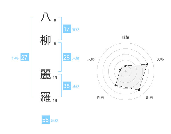 八柳 麗羅さんを姓名の画数から五運を鑑定