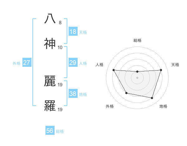 八神 麗羅さんを姓名の画数から五運を鑑定