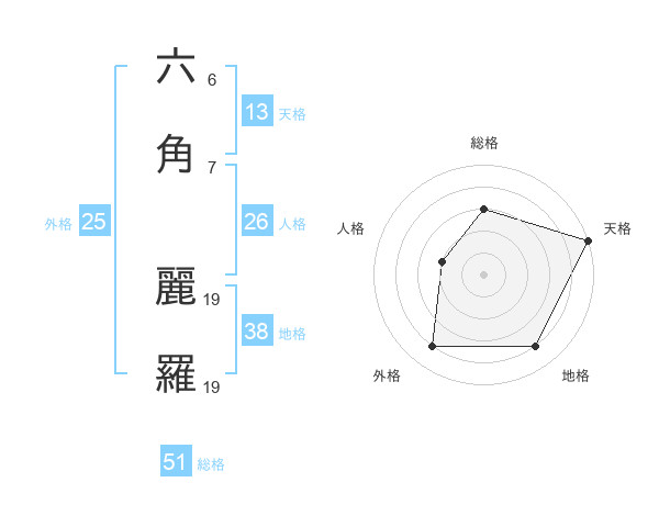 六角 麗羅さんの総格は51画の3点!