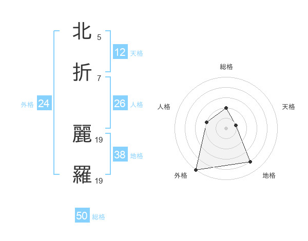 北折 麗羅さんの総格は50画の2点!