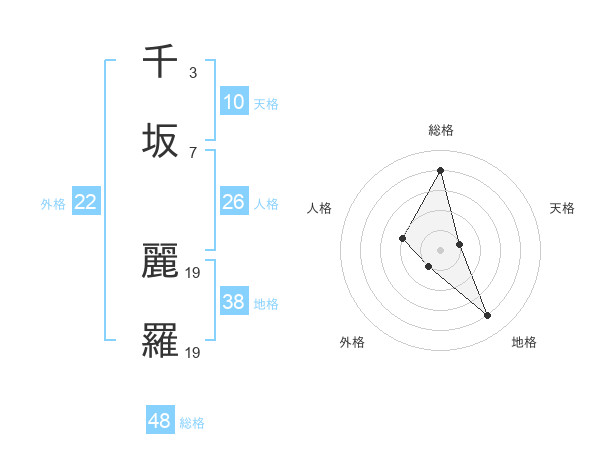 千坂 麗羅さんの総格は48画の4点!