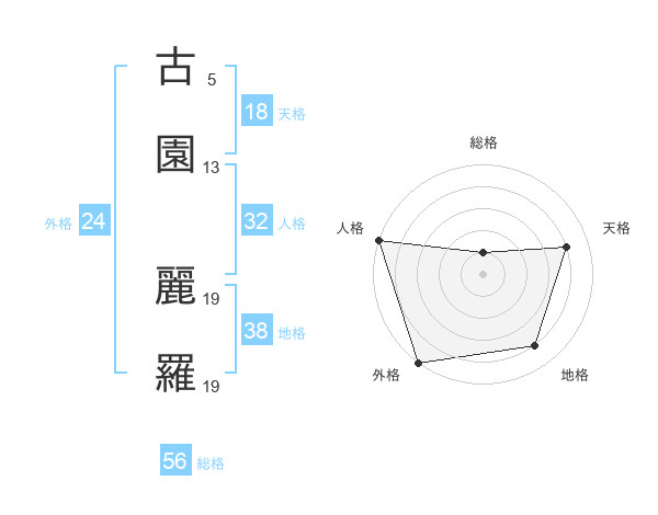 古園 麗羅さんを姓名の画数から五運を鑑定
