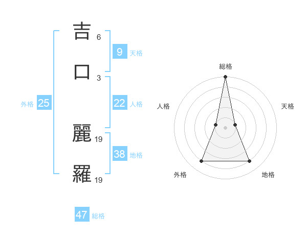 吉口 麗羅さんを姓名の画数から五運を鑑定