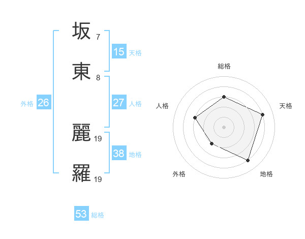 坂東 麗羅さんの総格は53画の3点!