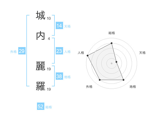 城内 麗羅さんの総格は52画の4点!