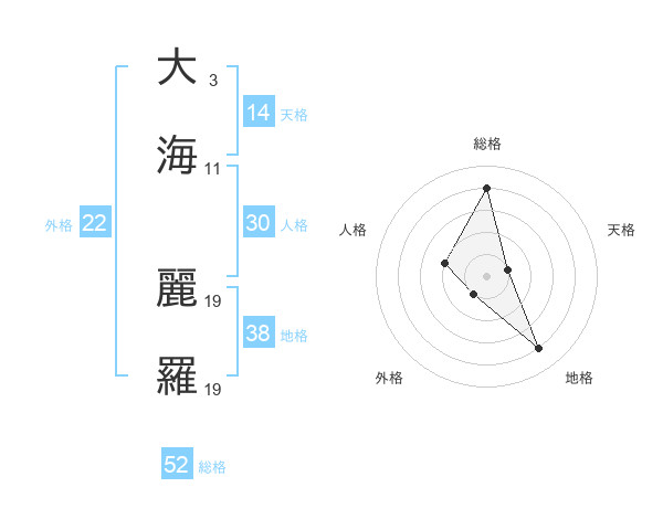 大海 麗羅さんの総格は52画の4点!