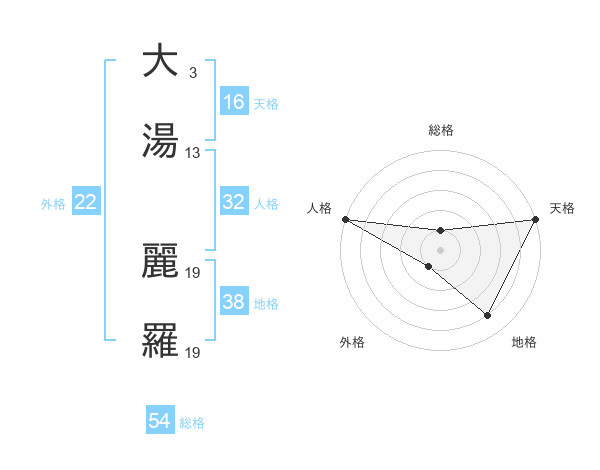 大湯 麗羅さんの天格は16画の5点!
