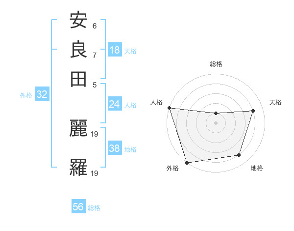 安良田 麗羅さんを姓名の画数から五運を鑑定