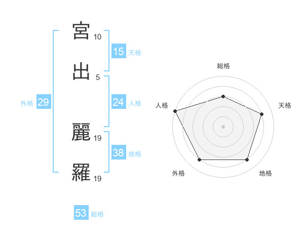 宮出 麗羅さんの総格は53画の3点!