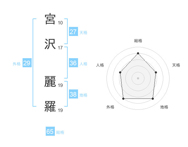 宮沢 麗羅さんを姓名の画数から五運を鑑定