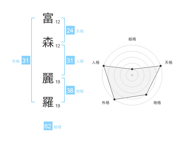 富森 麗羅さんの外格は31画の5点!