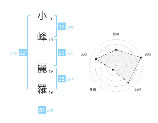 小峰 麗羅さんの総格は51画の3点!
