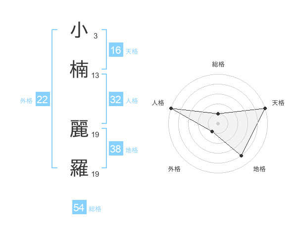 小楠 麗羅さんの外格は22画の1点!