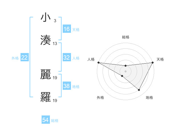 小湊 麗羅さんの天格は16画の5点!
