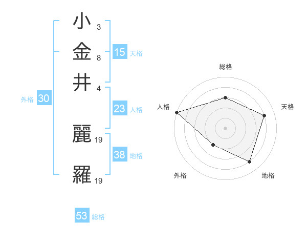 小金井 麗羅さんを姓名の画数から五運を鑑定