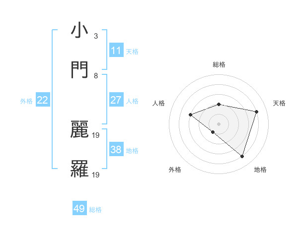 小門 麗羅さんの外格は22画の1点!