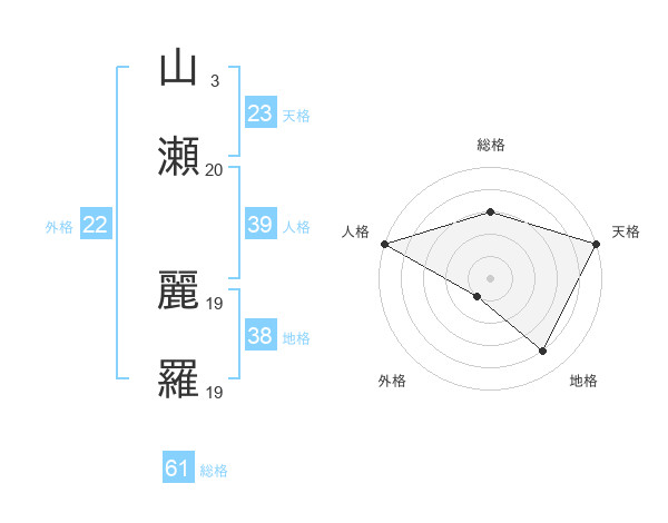 山瀬 麗羅さんの総格は61画の3点!
