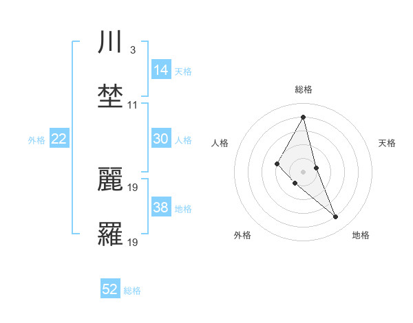 川埜 麗羅さんを姓名の画数から五運を鑑定