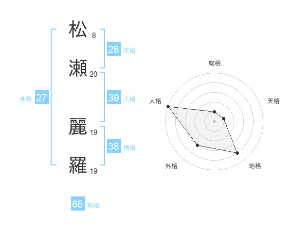 松瀬 麗羅さんを姓名の画数から五運を鑑定