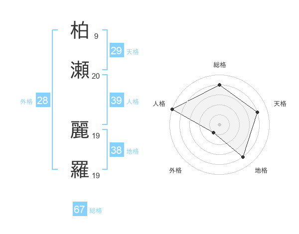 柏瀬 麗羅さんを姓名の画数から五運を鑑定