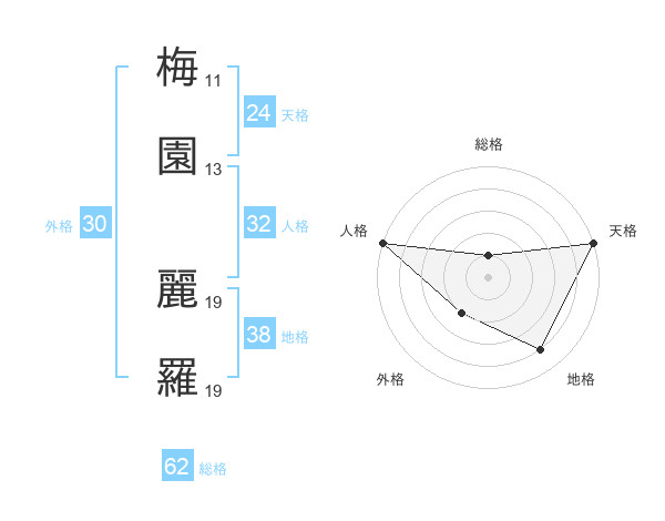梅園 麗羅さんの地格は38画の4点!