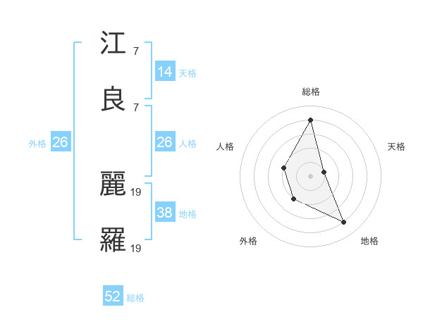 江良 麗羅さんを姓名の画数から五運を鑑定