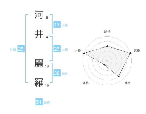 河井 麗羅さんを姓名の画数から五運を鑑定