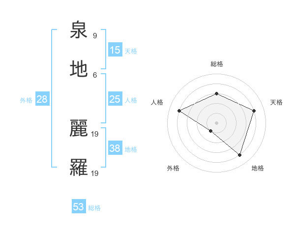 泉地 麗羅さんを姓名の画数から五運を鑑定