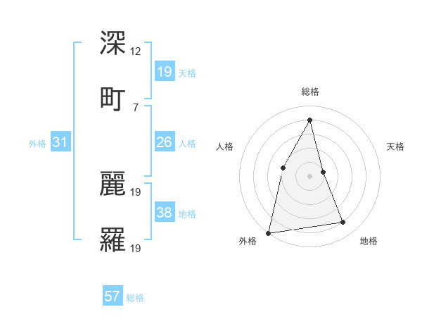深町 麗羅さんを姓名の画数から五運を鑑定