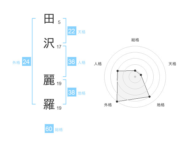 田沢 麗羅さんの総格は60画の1点!