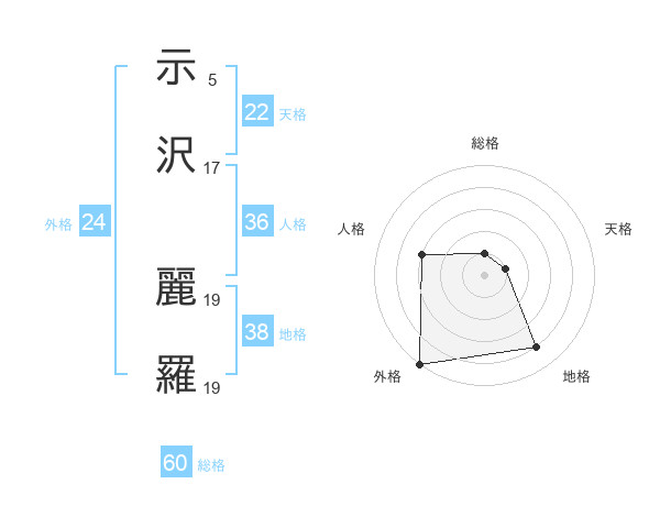 示沢 麗羅さんの総格は60画の1点!