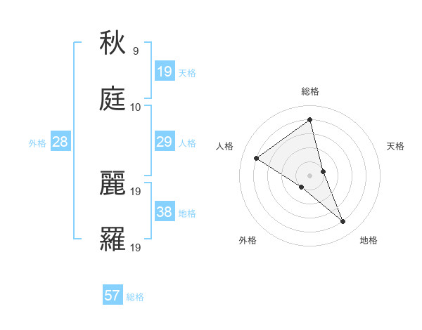秋庭 麗羅さんの総格は57画の4点!