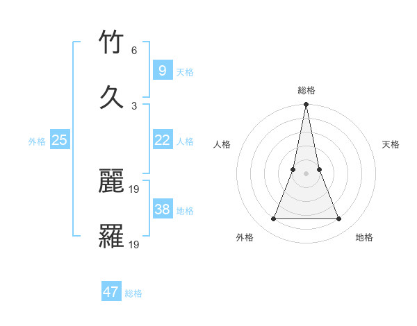 竹久 麗羅さんの総格は47画の5点!