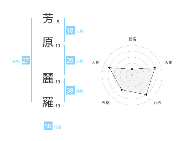 芳原 麗羅さんの天格は18画の4点!
