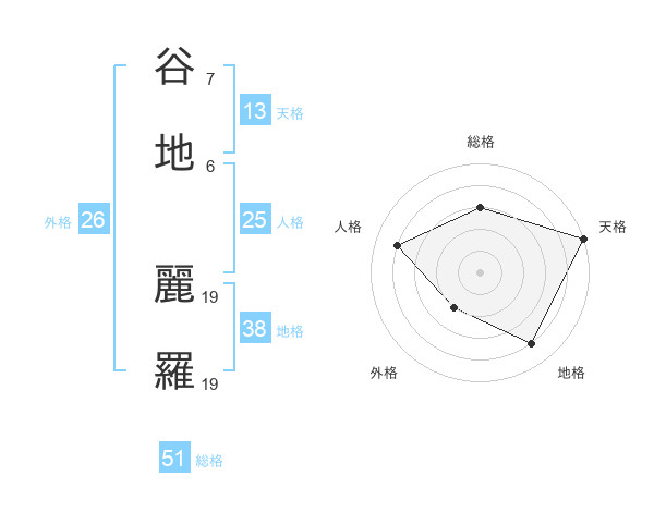 谷地 麗羅さんの総格は51画の3点!