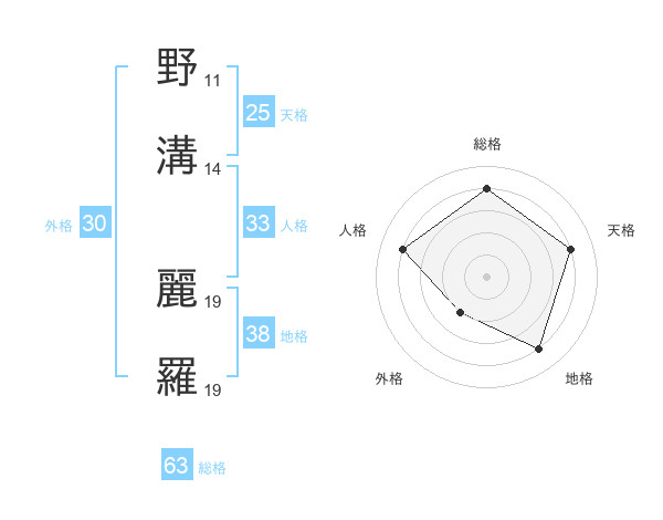 野溝 麗羅さんの総格は63画の4点!