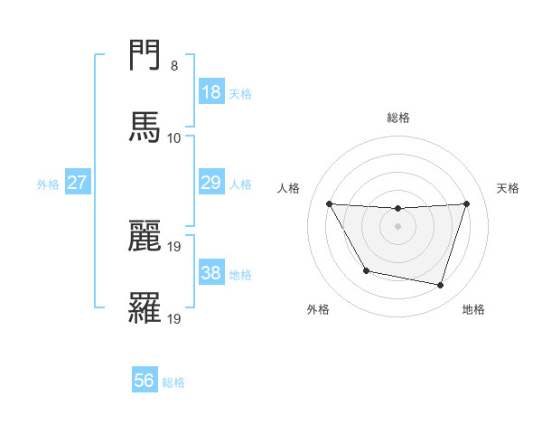 門馬 麗羅さんを姓名の画数から五運を鑑定