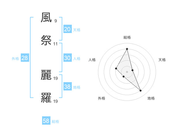 風祭 麗羅さんの総格は58画の4点!