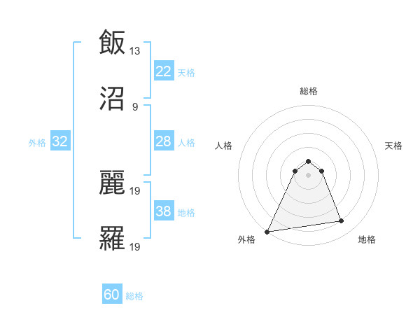 飯沼 麗羅さんを姓名の画数から五運を鑑定