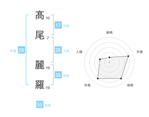 髙尾 麗羅さんの総格は55画の1点!