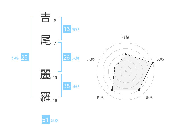 吉尾 麗羅さんの総格は51画の3点