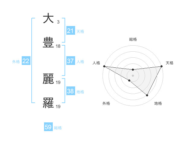 大豊 麗羅さんの外格は22画の1点!
