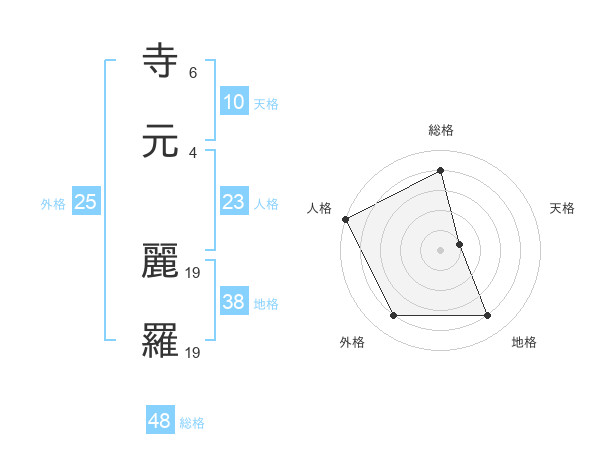 寺元 麗羅さんを姓名の画数から五運を鑑定