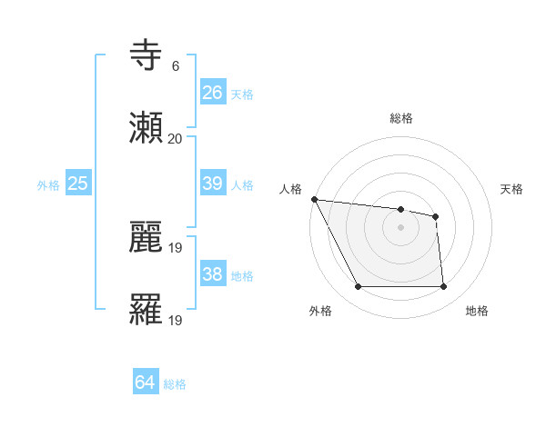 寺瀬 麗羅さんを姓名の画数から五運を鑑定