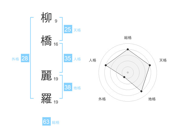 柳橋 麗羅さんを姓名の画数から五運を鑑定