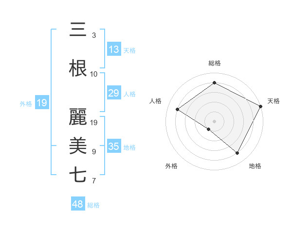 三根 麗美七さんを姓名の画数から五運を鑑定